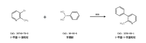 2.通过2-甲基-3-溴吡啶和苯硼酸合成2-甲基-3-苯基吡啶,收率约86%;