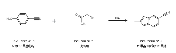 1.通过5-氰-2-甲基吡啶和溴丙酮合成2-甲基-吲哚嗪-6-甲腈,收率约82%;