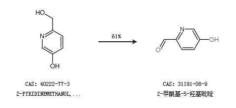 1.通过2-PYRIDINEMETHANOL,5-HYDROXY-合成2-甲酰基-5-羟基吡啶,收率约61%;