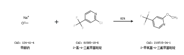 1.通过甲醇钠和2-氯-4-三氟甲基吡啶合成2-甲氧基-4-三氟甲基吡啶,收率约82%;