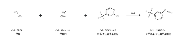 2.通过甲醇、甲醇钠和2-氯-4-三氟甲基吡啶合成2-甲氧基-4-三氟甲基吡啶,收率约86%;