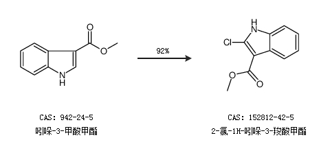 1.通过吲哚-3-甲酸甲酯合成2-氯-1H-吲哚-3-羧酸甲酯,收率约92%;