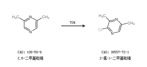 1.通过2,6-二甲基吡嗪合成2-氯-1-二甲基吡嗪,收率约70%;