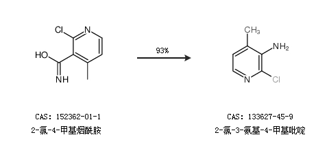 1.通过2-氯-4-甲基烟酰胺合成2-氯-3-氨基-4-甲基吡啶,收率约93%;
