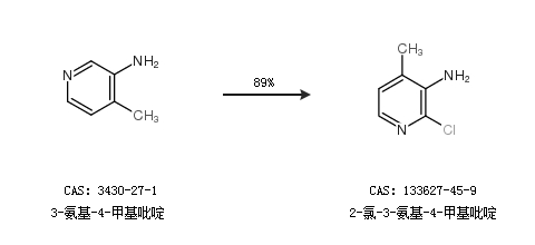 2.通过3-氨基-4-甲基吡啶合成2-氯-3-氨基-4-甲基吡啶,收率约89%;