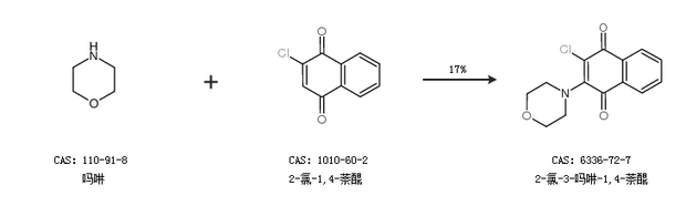 1.通过吗啉和2-氯-1,4-萘醌合成2-氯-3-吗啉-1,4-萘醌,收率约17%;