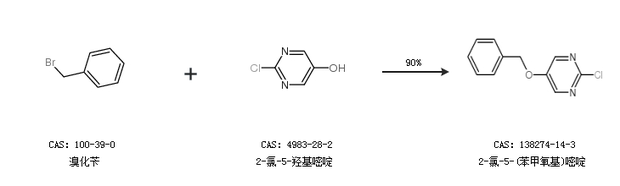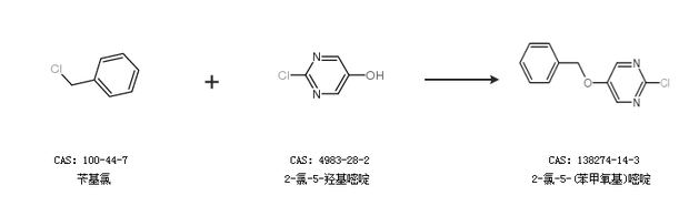 2.通过苄基氯和2-氯-5-羟基嘧啶合成2-氯-5-(苯甲氧基)嘧啶