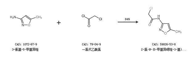 1.通过3-氨基-5-甲基异唑和一氯代乙酰氯合成2-氯-N-(5-甲基异噁唑-3-基)乙酰胺,收率约84%;