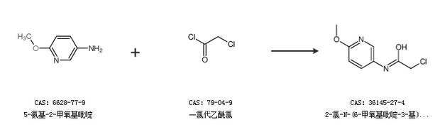 1.通过5-氨基-2-甲氧基吡啶和一氯代乙酰氯合成2-氯-N-(6-甲氧基吡啶-3-基)乙酰胺