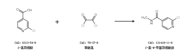 1.通过2-氯异烟酸和草酰氯合成2-氯-N-甲基异烟酰胺