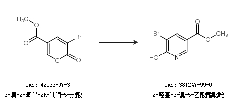 2.通过3-溴-2-氧代-2H-吡喃-5-羧酸甲酯合成2-羟基-3-溴-5-乙酸酯吡啶