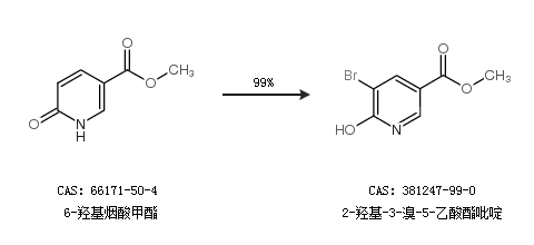 1.通过6-羟基烟酸甲酯合成2-羟基-3-溴-5-乙酸酯吡啶,收率约99%;