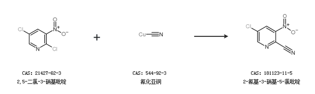 2.通过2,5-二氯-3-硝基吡啶和氰化亚铜合成2-氰基-3-硝基-5-氯吡啶