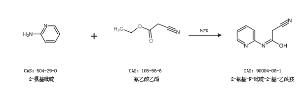 1.通过2-氨基吡啶和氰乙酸乙酯合成2-氰基-N-吡啶-2-基-乙酰胺,收率约52%;