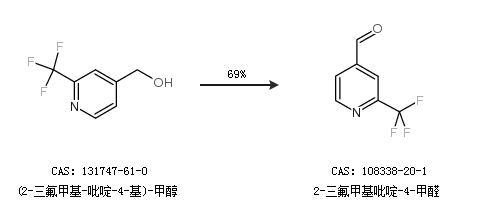 1.通过(2-三氟甲基-吡啶-4-基)-甲醇合成2-三氟甲基吡啶-4-甲醛,收率约69%;