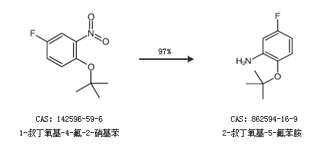 1.通过1-叔丁氧基-4-氟-2-硝基苯合成2-叔丁氧基-5-氟苯胺,收率约97%;