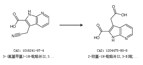 1.通过3-(氰基甲基)-1H-吡咯并[2,3-B]吡啶-2-羧酸合成2-羧基-1H-吡咯并[2,3-B]吡啶-3-乙酸