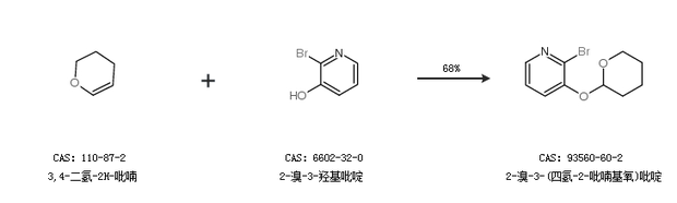 1.通过3,4-二氢-2H-吡喃和2-溴-3-羟基吡啶合成2-溴-3-(四氢-2-吡喃基氧)吡啶,收率约68%;