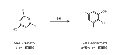 1.通过3,5-二氟苯酚合成2-溴-3,5-二氟苯酚,收率约59%;