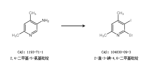1.通过2,4-二甲基-5-氨基吡啶合成2-溴-3-碘-4,6-二甲基吡啶