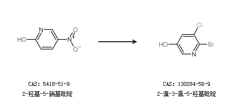 1.通过2-羟基-5-硝基吡啶合成2-溴-3-氯-5-羟基吡啶