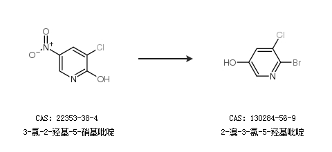 2.通过3-氯-2-羟基-5-硝基吡啶合成2-溴-3-氯-5-羟基吡啶