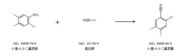 2.通过2-溴-4,5-二氟苯胺和氰化钾合成2-溴-4,5-二氟苯腈