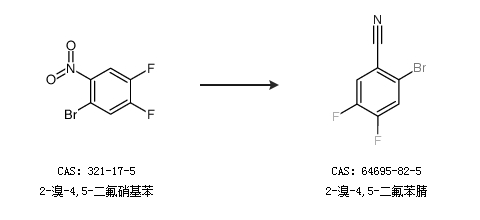 1.通过2-溴-4,5-二氟硝基苯合成2-溴-4,5-二氟苯腈