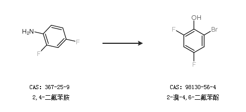 2.通过2,4-二氟苯胺合成2-溴-4,6-二氟苯酚