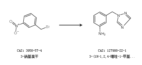 1.通过3-硝基溴苄合成3-(1H-1,2,4-噻唑-1-甲基)苯胺
