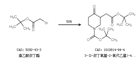 1.通过溴乙酸叔丁酯合成3-(2-叔丁氧基-2-氧代乙基)-4-氧代哌啶-1-羧酸叔丁酯,收率约50%;