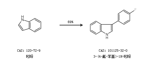 1.通过吲哚合成3-(4-氟-苯基)-1H-吲哚,收率约69%;