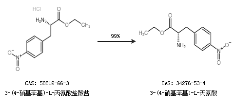 1.通过3-(4-硝基苯基)-L-丙氨酸盐酸盐合成3-(4-硝基苯基)-L-丙氨酸,收率约99%;