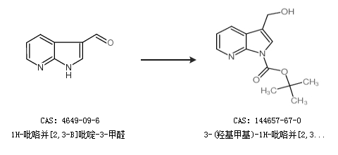 2.通过1H-吡咯并[2,3-B]吡啶-3-甲醛合成3-(羟基甲基)-1H-吡咯并[2,3-b]吡啶-1-羧酸叔丁酯