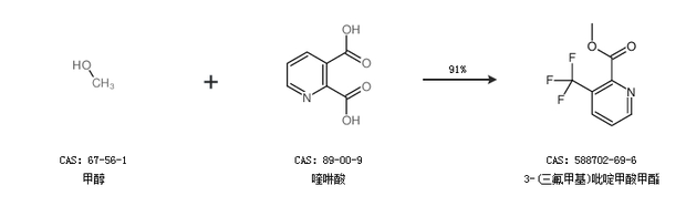 1.通过甲醇和喹啉酸合成3-(三氟甲基)吡啶甲酸甲酯,收率约91%;