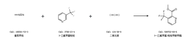 2.通过重氮甲烷、3-三氟甲基吡啶和二氧化碳合成3-(三氟甲基)吡啶甲酸甲酯