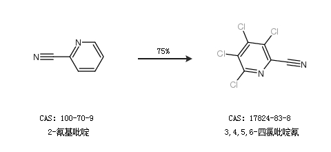 2.通过2-氰基吡啶合成3,4,5,6-四氯吡啶氰,收率约75%;