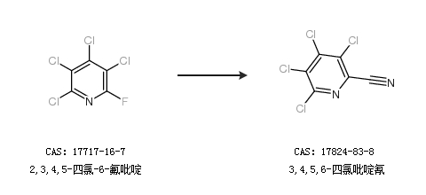 1.通过2,3,4,5-四氯-6-氟吡啶合成3,4,5,6-四氯吡啶氰