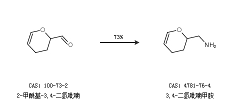 1.通过2-甲酰基-3,4-二氢吡喃合成3,4-二氢吡喃甲胺,收率约73%;