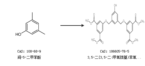 2.通过间-5-二甲苯酚合成3,5-二[3,5-二(甲氧羰基)苯氧甲基]苯酚