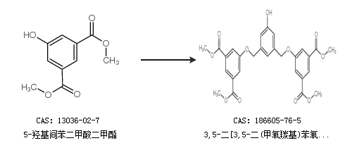 1.通过5-羟基间苯二甲酸二甲酯合成3,5-二[3,5-二(甲氧羰基)苯氧甲基]苯酚