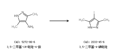 2.通过3,5-二甲基-1H-吡唑-4-胺合成3,5-二甲基-4-碘吡唑