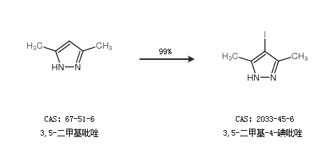 1.通过3,5-二甲基吡唑合成3,5-二甲基-4-碘吡唑,收率约99%;