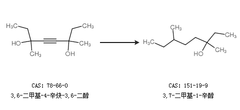 1.通过3,6-二甲基-4-辛炔-3,6-二醇合成3,7-二甲基-1-辛醇