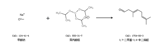 2.通过甲醇钠和异丙醇铝合成3,7-二甲基-3,6-辛二烯醛