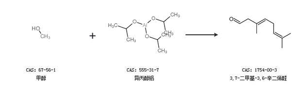 1.通过甲醇和异丙醇铝合成3,7-二甲基-3,6-辛二烯醛