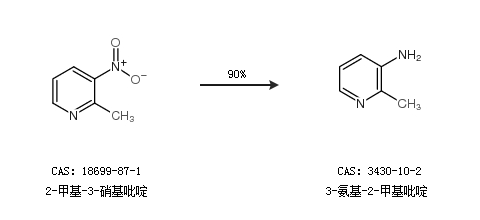 1.通过2-甲基-3-硝基吡啶合成3-氨基-2-甲基吡啶,收率约90%;