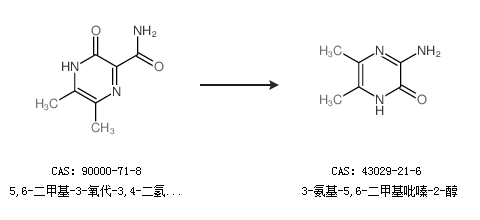1.通过5,6-二甲基-3-氧代-3,4-二氢吡嗪-2-羧酰胺合成3-氨基-5,6-二甲基吡嗪-2-醇