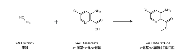 1.通过甲醇和3- 氨基-5-氯-2-羧酸合成3-氨基-5-氯吡啶甲酸甲酯