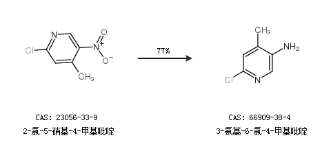 1.通过2-氯-5-硝基-4-甲基吡啶合成3-氨基-6-氯-4-甲基吡啶,收率约77%;